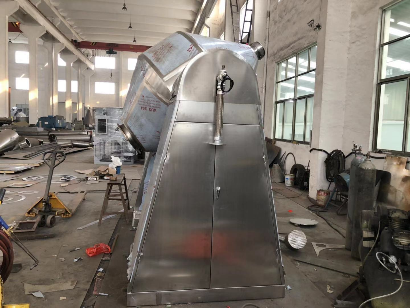在动力驱动下,罐体作缓慢旋转,罐内物料不断地混合,从而达到强化干燥的目的。
